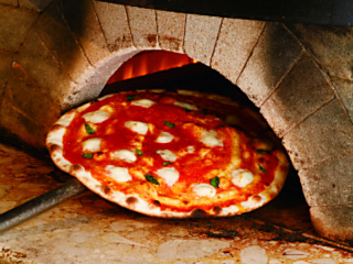 粉から生地を練り上げたピザや